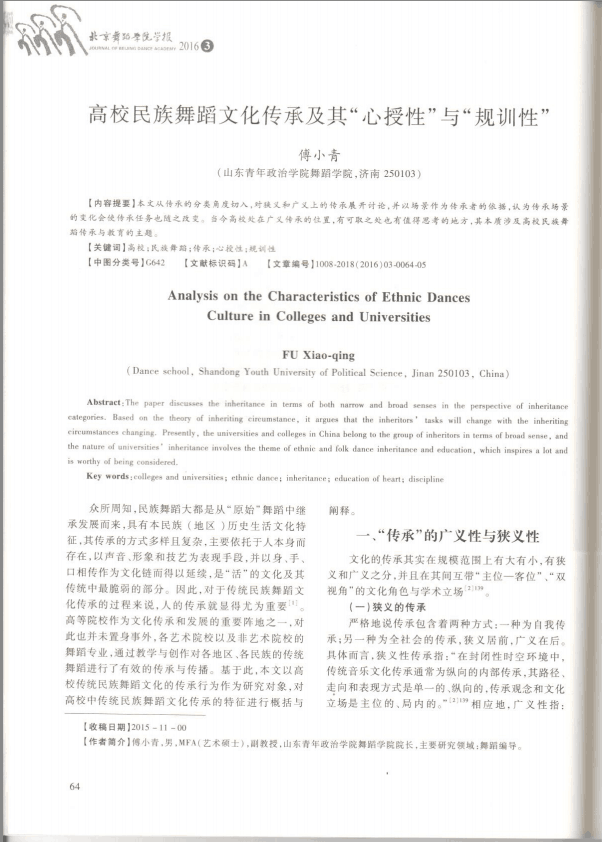 《高校民族舞蹈文化传承及其“心授性”与“规训性”》