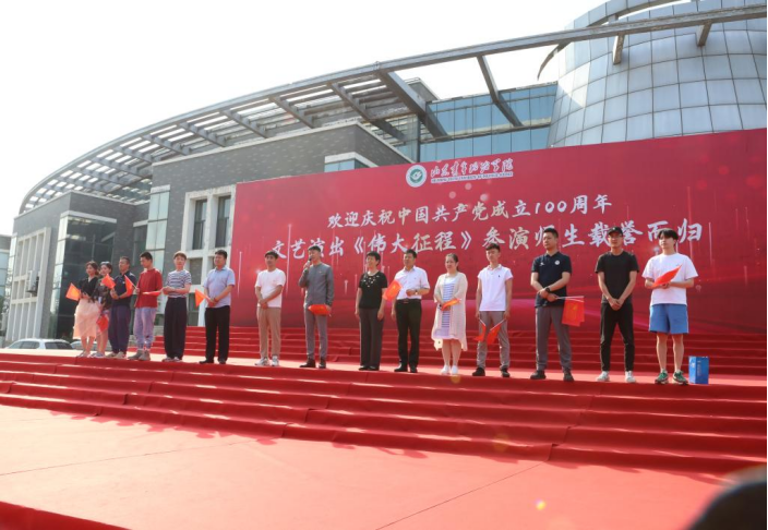 党的盛典,有我山青。由中央宣传部、文化和旅游部、国家广播电视总局、中央广播电视总台、中央军委政治工作部、北京市主办的庆祝中国共产党成立100周年文艺演出《伟大征程》于6月28日晚在国家体育场盛大举行,7月1日在中央电视台综合频道黄金时段正式播出。山东青年政治学院舞蹈学院200余名师生参演了此次演出,为党的百年华诞献上最真挚的祝福。