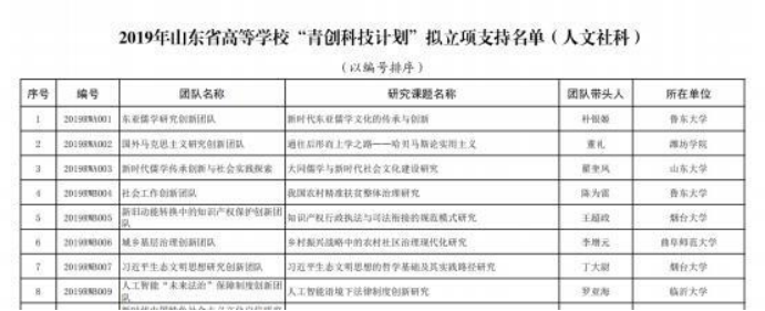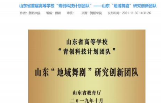 山东省高等学校“青创科技计划团队” ——山东“地域舞剧研究创新团队”