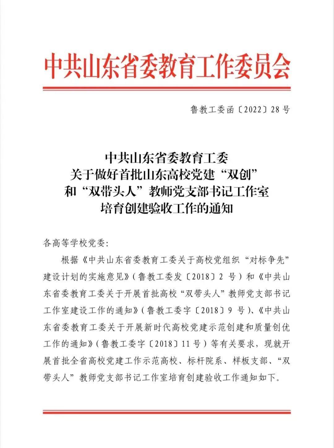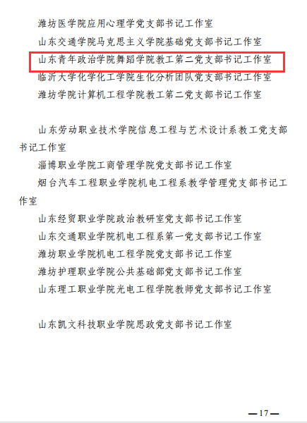 舞蹈学院教工第二党支部获首批山东高校“双带头人”教师党支部书记工作室